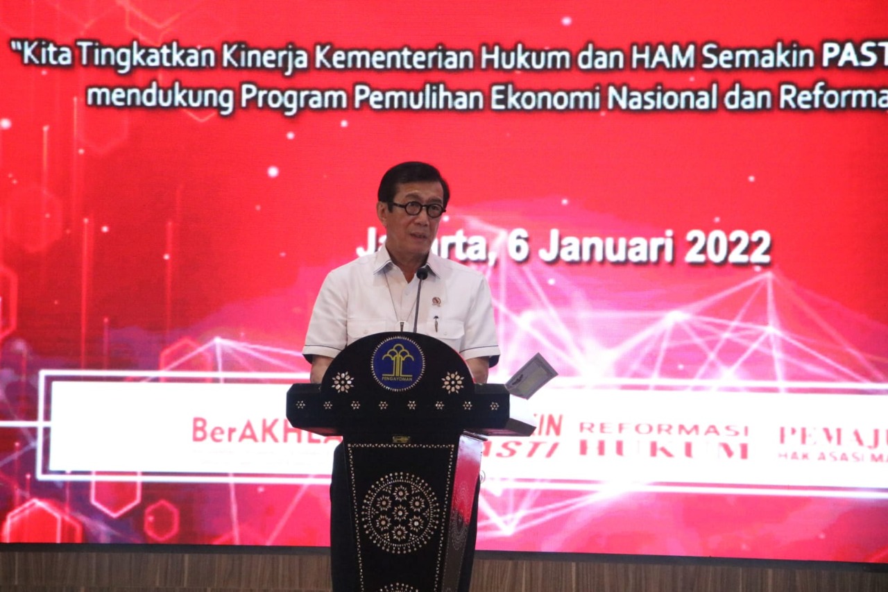 Jakarta – Kementerian Hukum dan HAM (Kemenkumham) melaksanakan deklarasi janji kinerja tahun 2022. Menteri Hukum dan HAM, Yasonna H. Laoly mengatakan kegiatan ini dilakukan untuk mengukuhkan komitmen pegawai bekerja mencapai target kinerja.