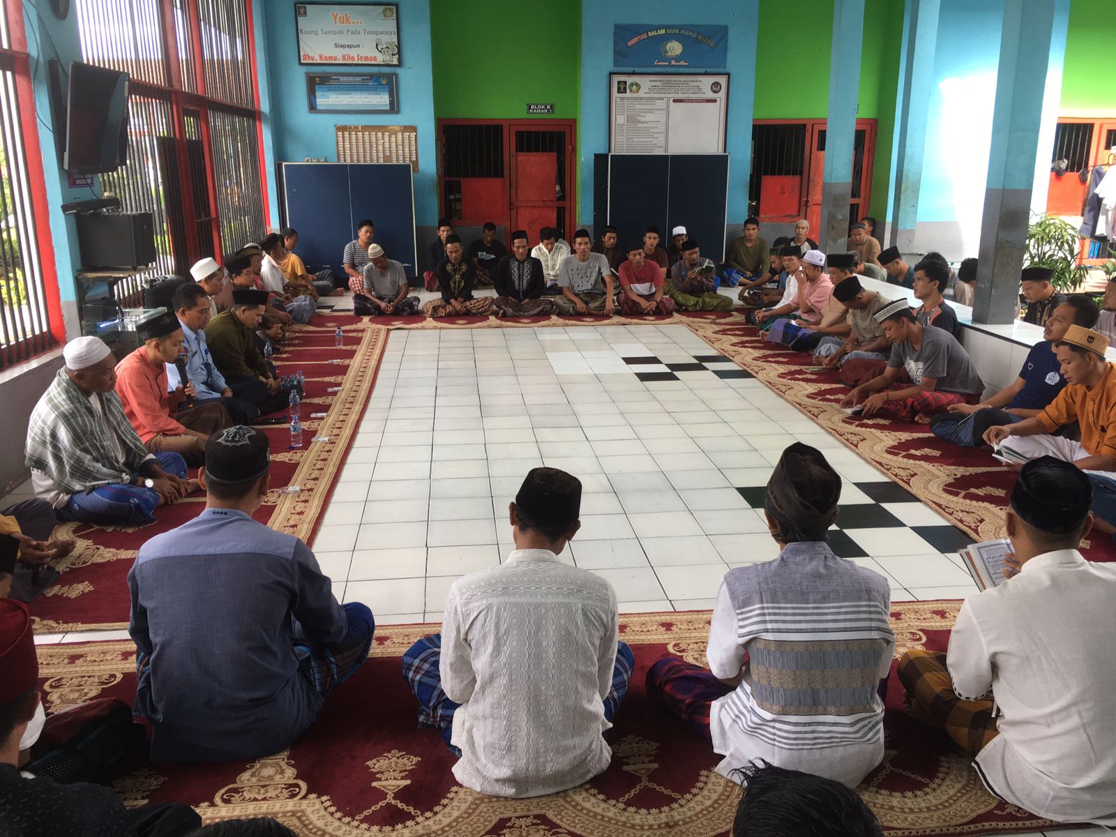 Dengan didampingi pembina kerohanian, kegiatan pengajian rutin ini dilaksanakan di Blok Hunian secara bergantian dan diikuti oleh seluruh warga binaan setiap harinya.