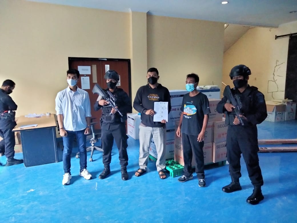 Dansat Brimob Kombes Pol Dwi Yanto Nugroho menyampaikan bahwa Satbrimob Polda Banten melakukan pengawalan kedatangan vaksin ke gudang Dinkes Provinsi Banten, “Vaksin yang tiba pukul 04.00 di gerbang tol Cikupa tersebut mendapat pengawalan ketat oleh personel Detasemen Gegana dengan persenjataan lengkap estafet dari Detasemen Gegana Satbrimob Polda Metrojaya,” ujar Dwi Yanto Nugroho.