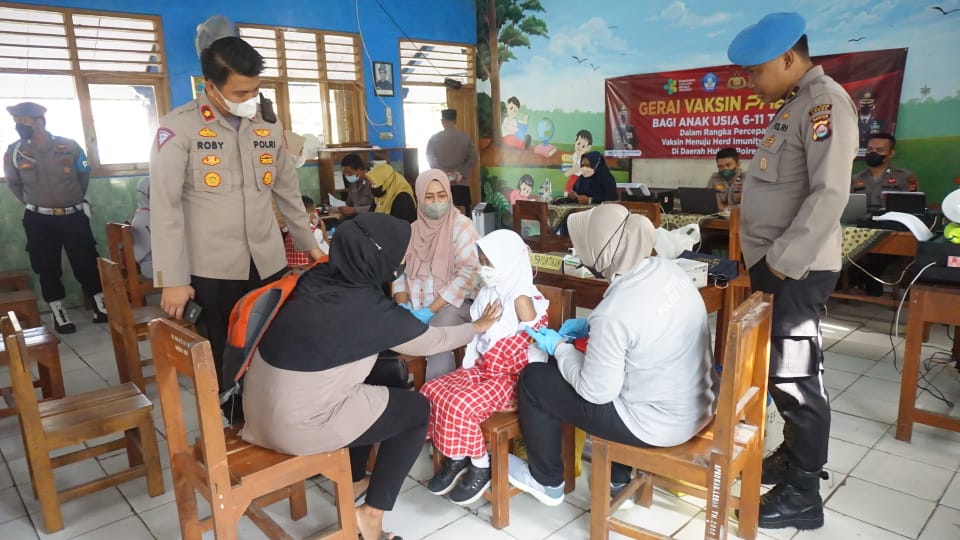 “Ya pagi ini Polres Lebak melaksanakan Vaksinasi Anak Usia 6-11 Tahun di SDN I Rangkasbitung Barat Jl. MH. Iko Djatmiko Kel. Muara Ciujung Barat Kec. Rangkasbitung, Kab. Lebak,” ujar Teddy.