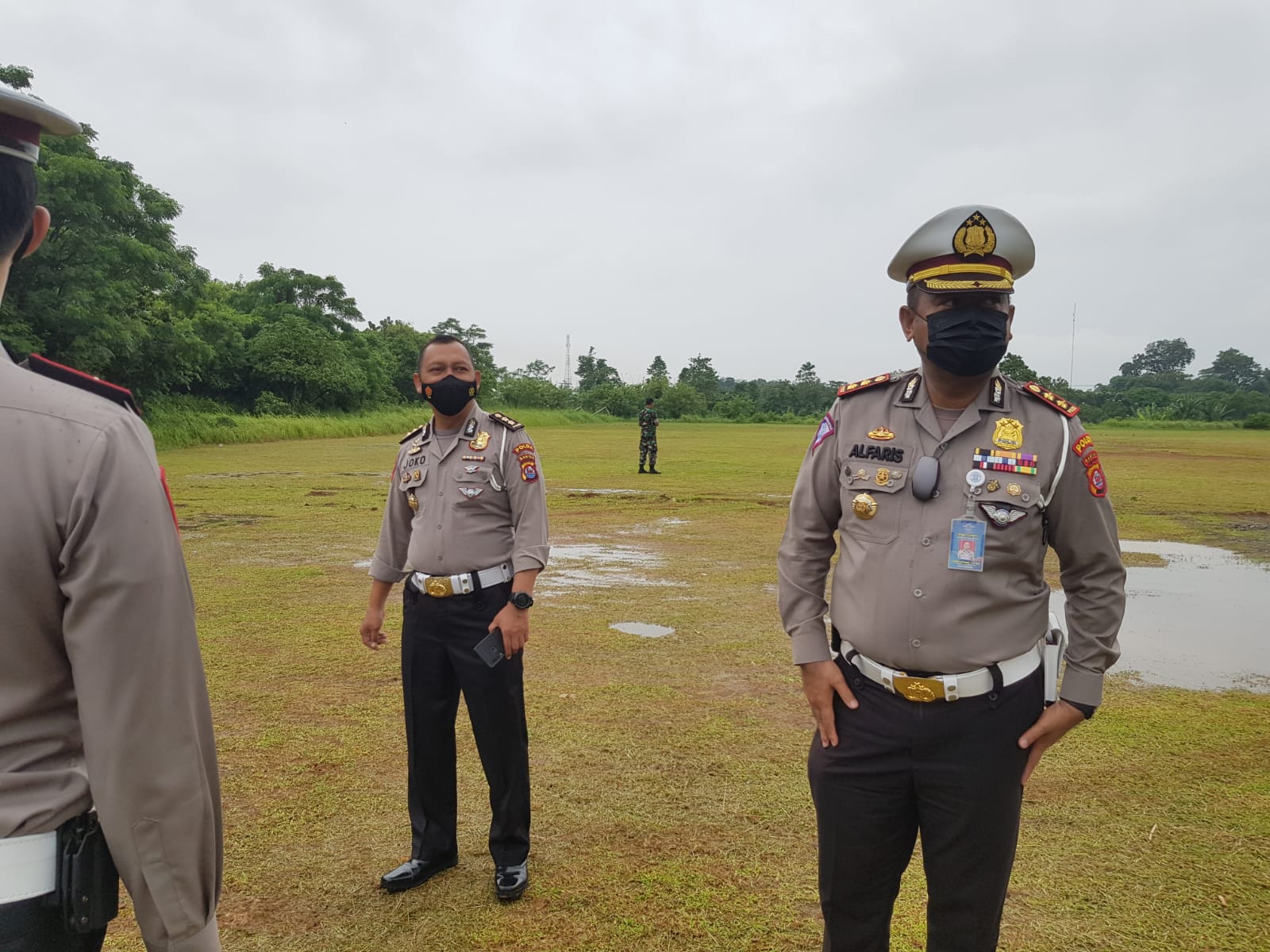 Serang – Dalam rangka kunjungan kerja (Kunker) Wakil Presiden Republik Indonesia Prof. Dr. Ma’ruf Amin ke Provinsi Banten, Wadirlantas Polda Banten AKBP Alfaris Pattiwael didampingi Pejabat Utama Ditlantas mengecek secara langsung kesiapan lapangan landasan helikopter (Helipad) yang berlokasi di Lapangan Desa Boru, Kelurahan Cilaku, Kecamatan Curug, Kota Serang pada Kamis (20/01).