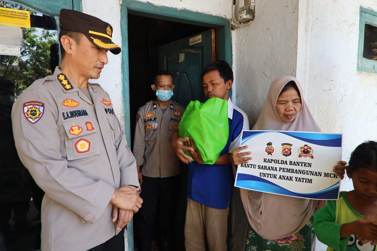 Cilegon – Polda Banten melaksanakan penyaluran bantuan berupa sembako, santunan dan pembangunan mandi cuci kakus (MCK) kepada Juniati (49) bertempat di Kampung Palas, Desa Bendungan, Kecamatan Cilegon, Kota Cilegon pada Kamis (21/01).