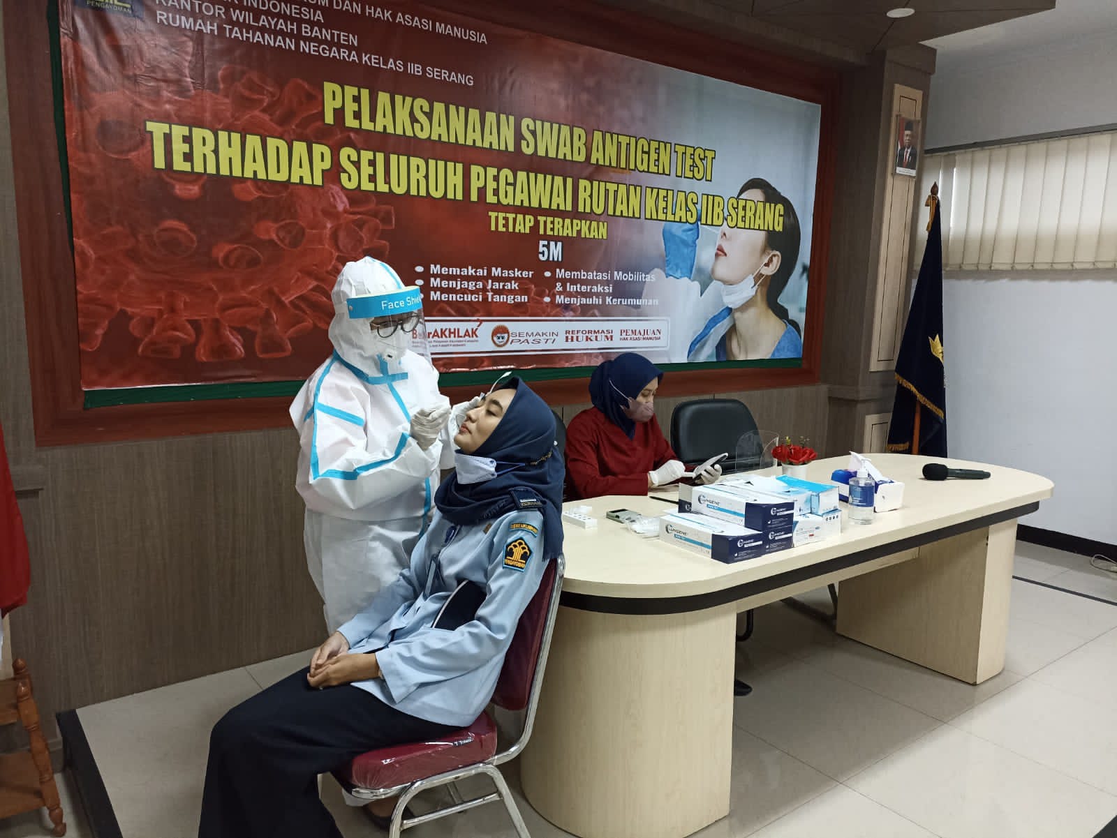 SERANG, (Haluanbanten.co.id) – Sebanyak 79 Staff dan Pegawai Rumah Tahanan Negara (Rutan) Kelas IIB Serang Melaksanakan Pemeriksaan Antigen di Aula Rutan Serang. Rabu, (26/01).