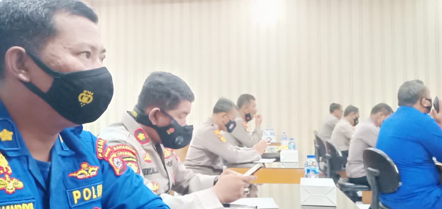 Kota Serang – Dirpolairud Polda Banten Kombes Pol Giuseppe Reinhard Gultom mengikuti kegiatan zoom meeting tentang tugas Harkamtibmas dalam menghadapi dan Penanganan Covid-19.