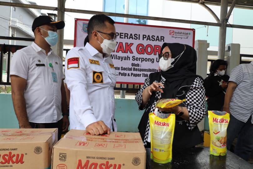 TANGSEL (haluanbanten.co.id) – Wakil Wali Kota Tangerang Selatan (Tangsel) Pilar Saga Icshan memberikan apresiasi kepada PT. Indah Kiat Pulp & Paper yang telah menggelar operasi pasar minyak goreng seharga Rp. 14 ribu yang berlokasi di Kantor Kelurahan Pakulonan, Kecamatan Serpong Utara, Rabu (9/2).