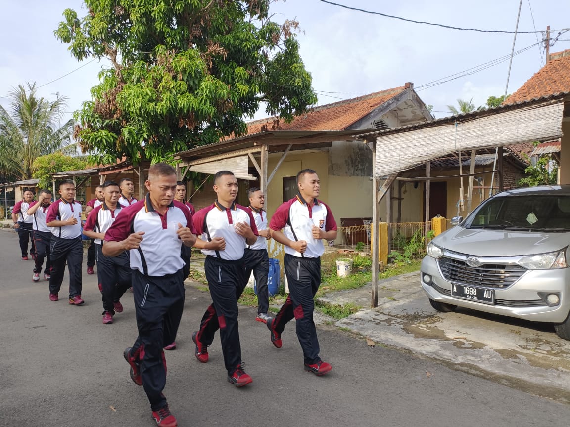 Serang – Personel Batalyon B Pelopor Satbrimob Polda Banten setelah pelaksanaan apel pagi, dilanjutkan dengan kegiatan lari pagi dan latihan peningkatan fisik bertempat di Markas Komando (Mako) Satbrimob Polda Banten pada Jumat (11/02).