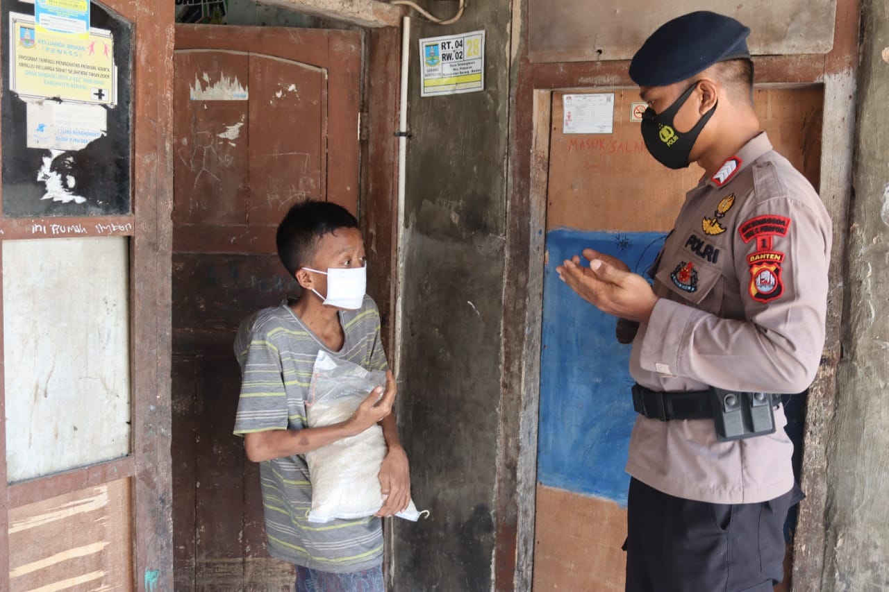 Serang – Guna membantu meringankan beban masyarakat yang terdampak Covid-19, personel Kompi 1 Batalyon C Pelopor Satbrimob Polda Banten salurkan bantuan berupa beras di Kota Serang pada Minggu (13/02).