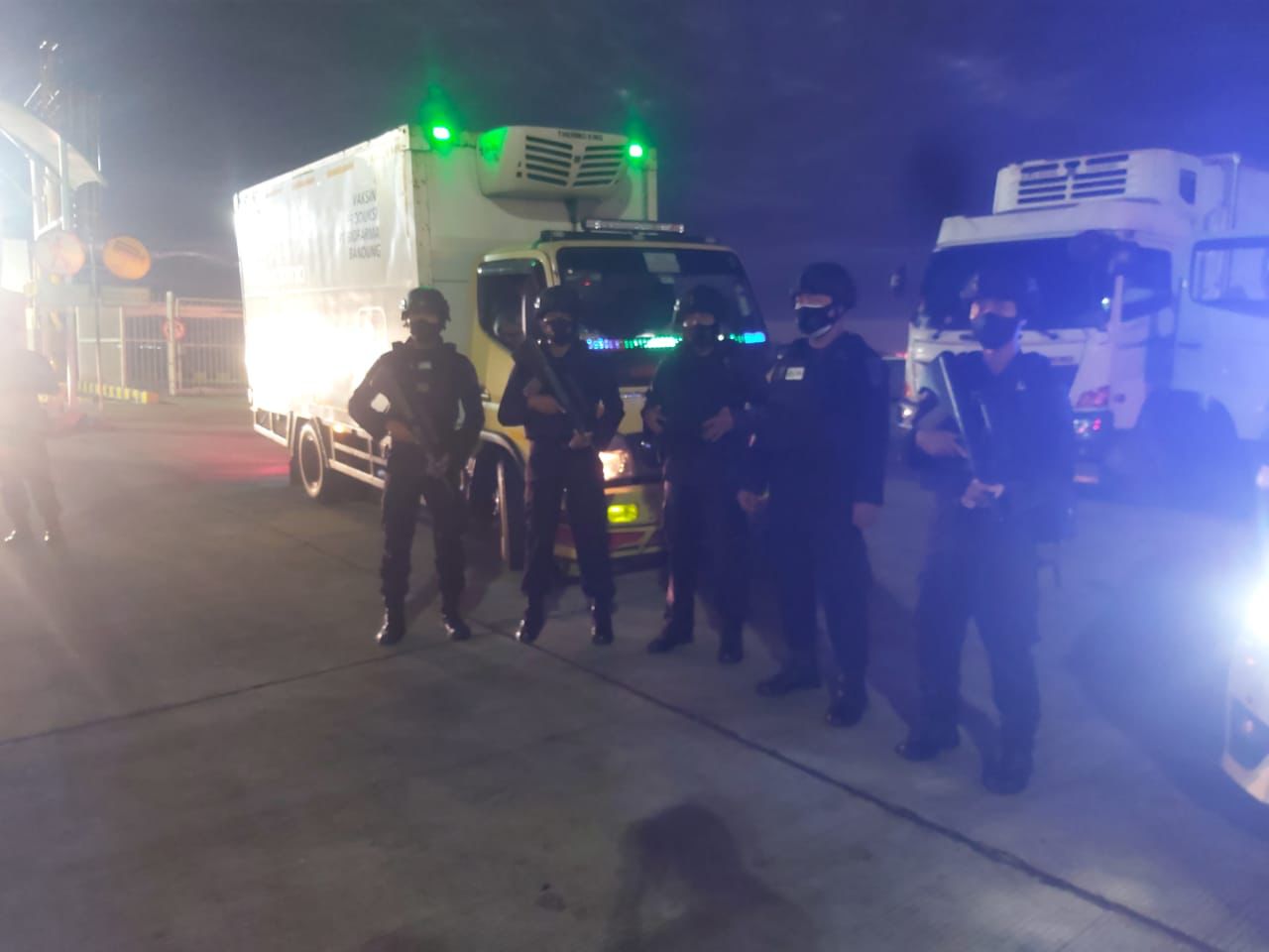 Kota Serang – Dengan mental dan persenjataan yang lengkap, Detasemen Gegana Satuan Brimob Polda Banten dipimpin Bripka Septa Pasmah Putra melaksanakan pengawalan vaksin untuk memastikan vaksin dapat sampai dengan keadaan baik di tempat tujuan pada Selasa (15/02).