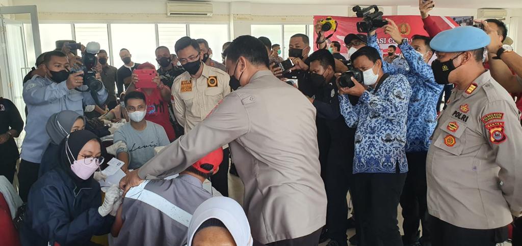Tangerang – Bidpropam Polda Banten melakukan pengamanan dan pengawasan kegiatan Kapolda Banten Irjen Pol Dr. Rudy Heriyanto dalam rangka meninjau langsung pelaksanaan Vaksinasi Covid-19 Serentak di Eco Plaza, Kecamatan Panongan, Kabupaten Tangerang pada Kamis (17/02).
