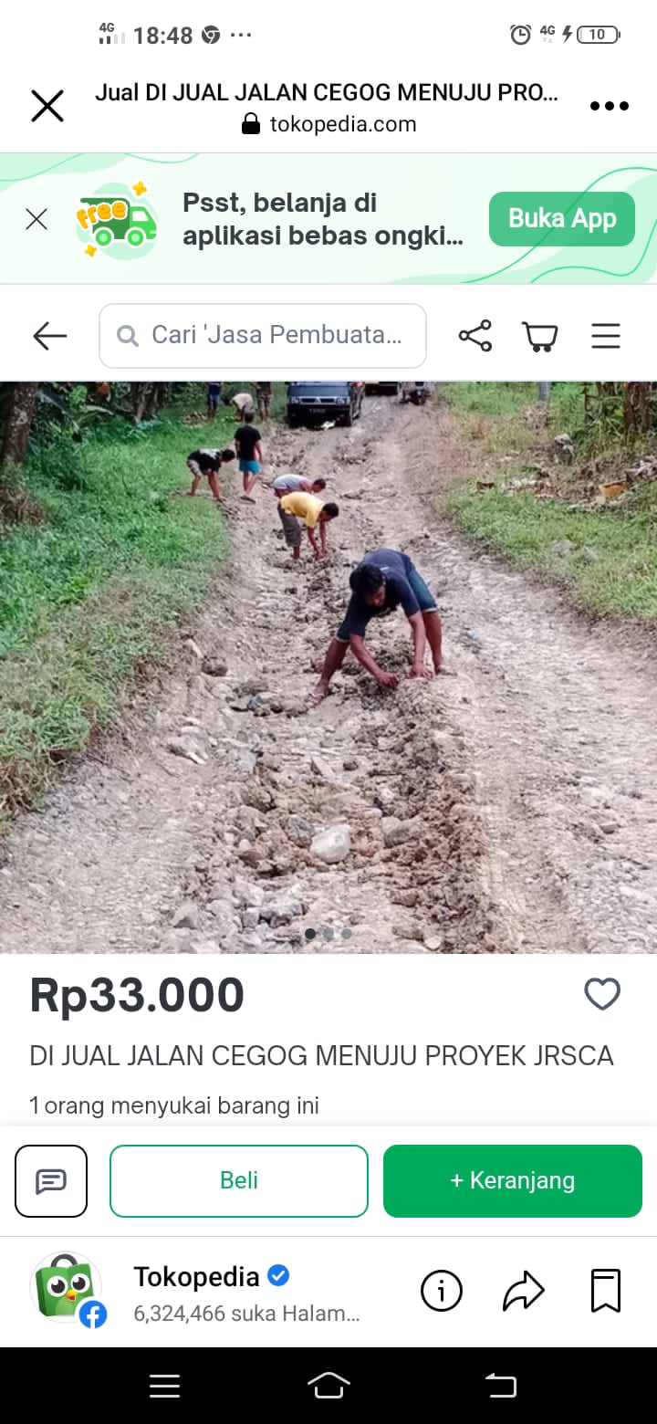Ya jual jalan di toko online tersebut sebagai aksi protes warga kepada pemerintah yang tak kunjung memperbaiki jalan Air jeruk-Cegog.