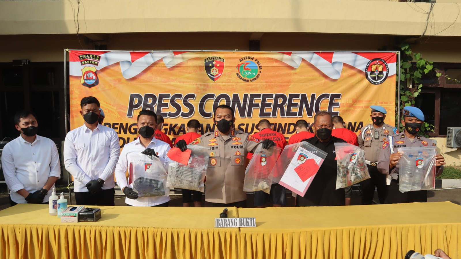 Cilegon- Polres Cilegon Polda Banten melaksanakan press conference penetapan tersangka dalam kasus tahanan meninggal dunia di Polres Cilegon pada Senin (21/02).
