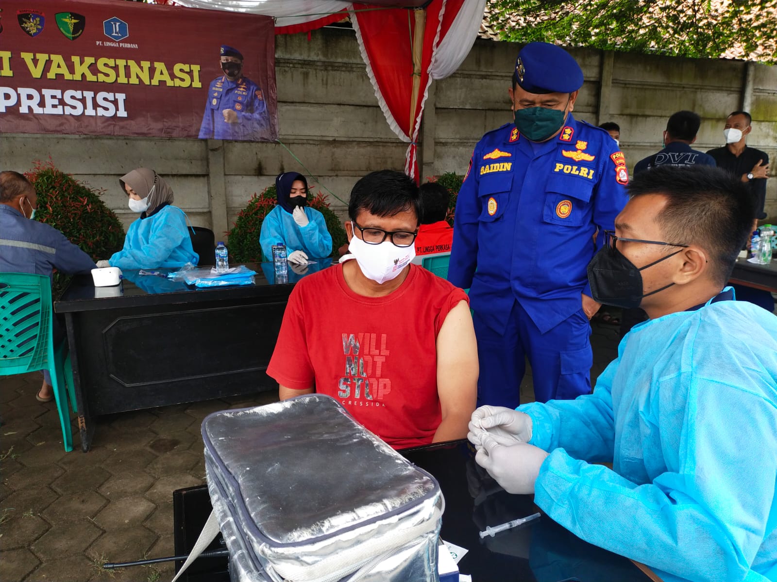 “Dalam kegiatan vaksinasi diikuti oleh sebanyak 164 orang. Dimana kegiatan ini merupakan bentuk dukungan kita kepada pemerintah tentang percepatan vaksinasi,” lanjutnya.