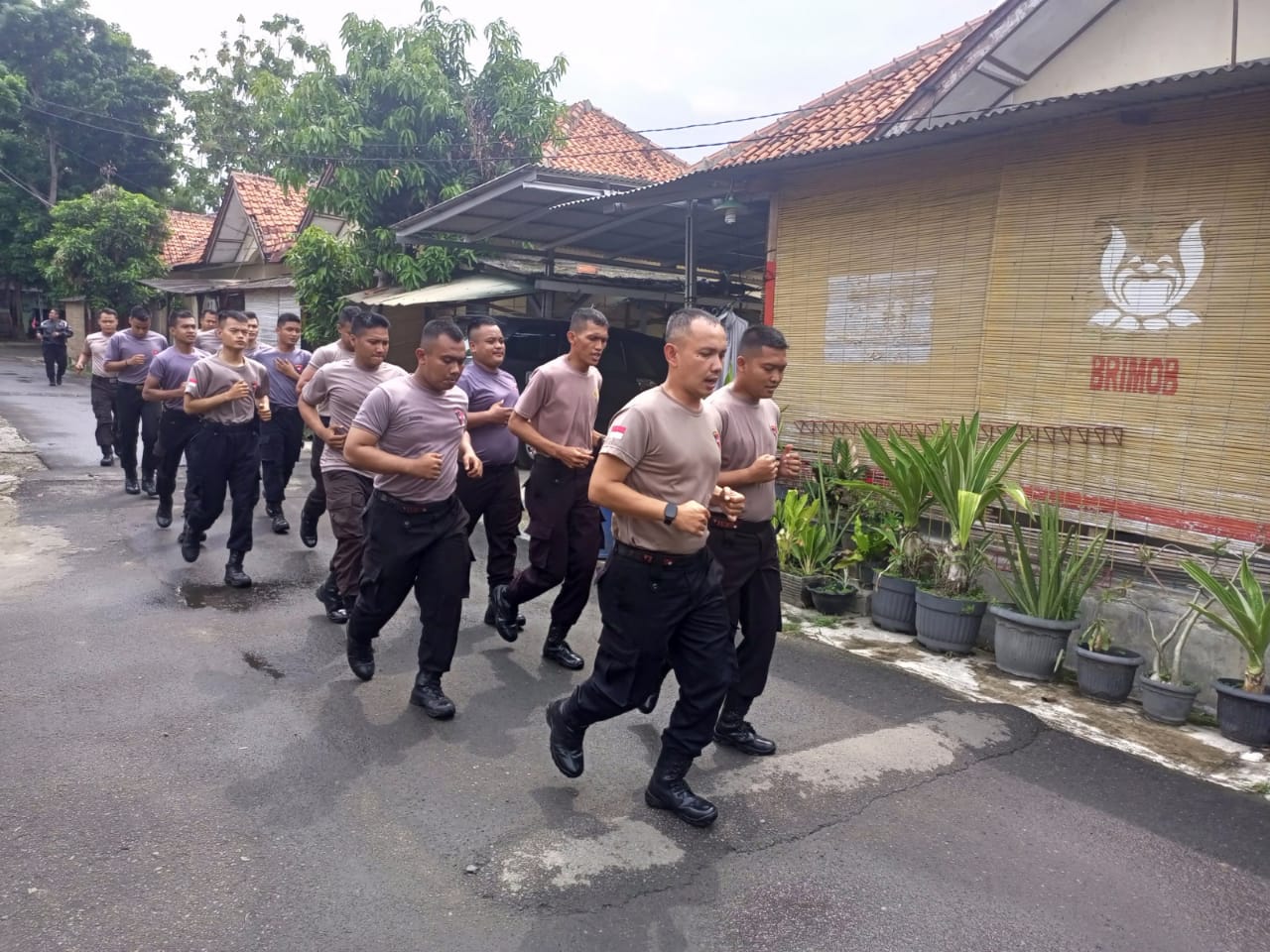 Lari siang dipimpin oleh Ipda Donny dengan diikuti oleh seluruh personel Batalyon C Pelopor.