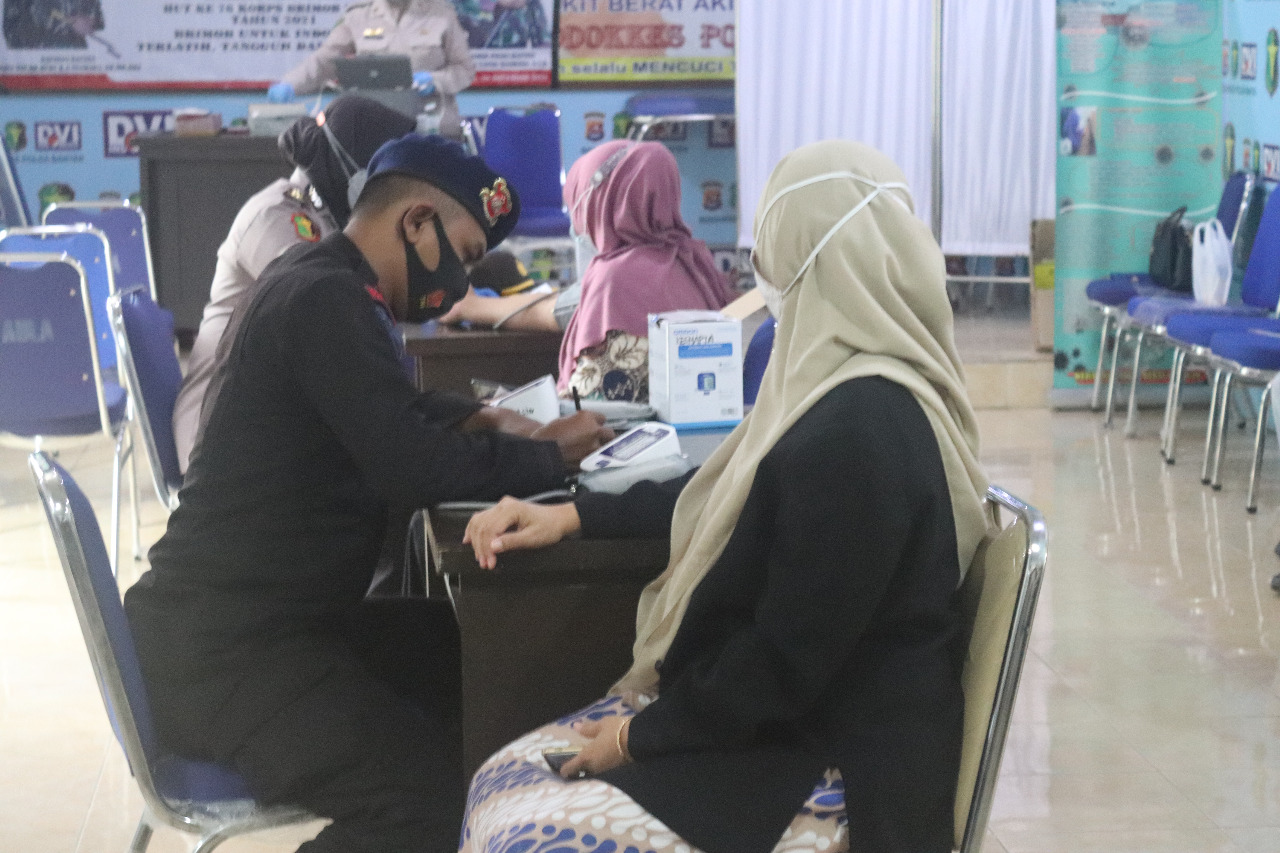 Serang – Dalam rangka mempercepat vaksinasi Booster massal untuk masyarakat Indonesia, khususnya di wilayah Serang, Kesjas Satbrimobda banten membantu pengecekan kesehatan masyarakat yang ingin melaksanakan vaksin Booster yang di gelar di Biddokkes Polda Banten, Banten pada Senin (28/02).
