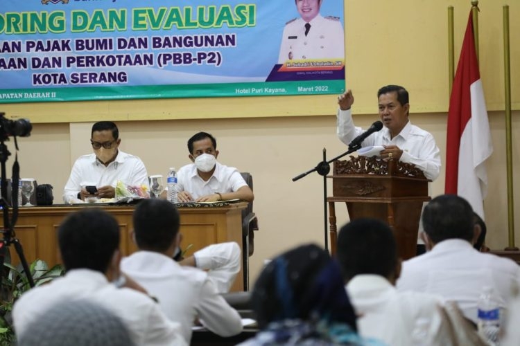 Walikota Serang Syafrudin menghadiri serta membuka kegiatan Monitoring dan Evaluasi Penerimaan Pajak Bumi dan Bangunan Perdesaan dan Perkotaan (PBB P2) yang diselenggarakan oleh Bapenda Kota Serang, Rabu, 23/3/22.