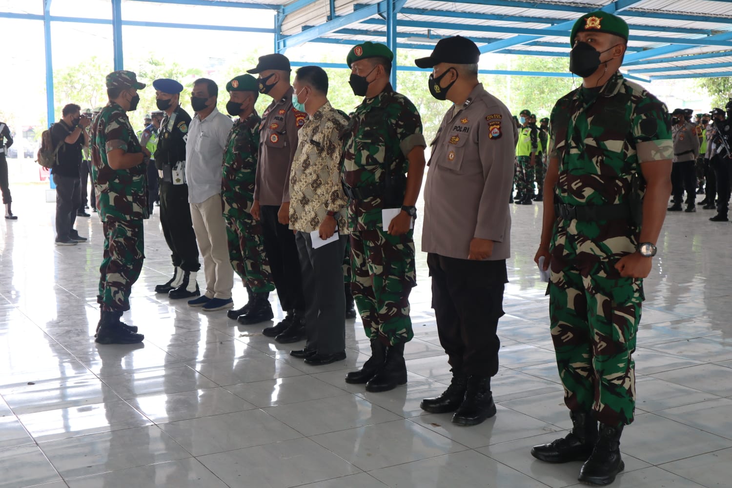 “TNI Polri merupakan garda terdepan dalam percepatan penanganan Covid-19, maka dari itu agar tidak berkerumun dan selalu memakai masker saat berada di lokasi ploting, jangan sampai timbul opini masyarakat bahwa TNI Polri tidak patuh protokol kesehatan,” tutup Kolonel (Inf) Sahnun.