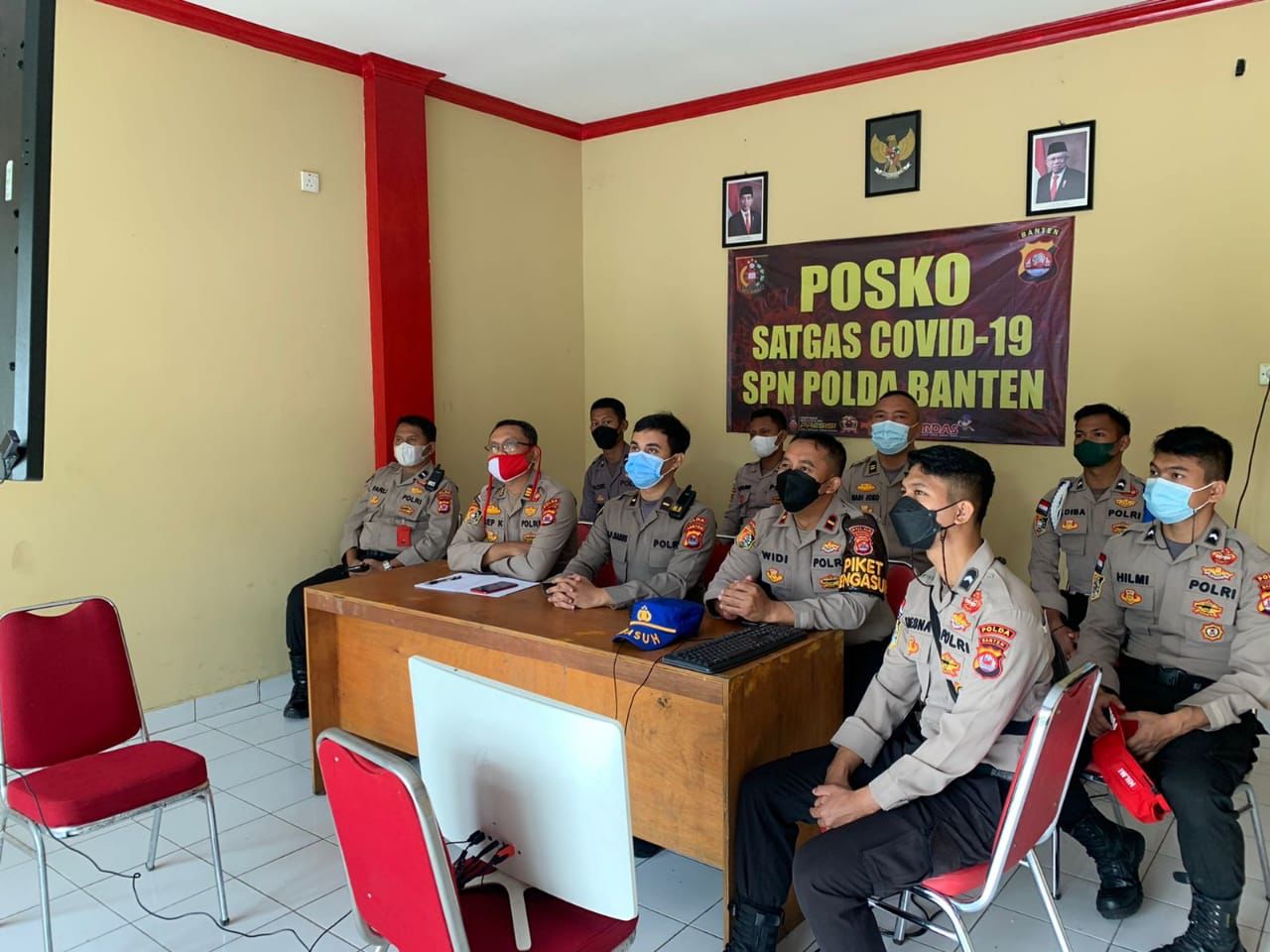Pandeglang – Dalam rangka menyiapkan langkah-langkah kinerja terkait penanganan Covid-19, Urkes SPN Polda Banten menghadiri kegiatan Vicon tentang penanganan pnyebaran Covid-19 yang dilaksanakan di SPN Polda Banten pada Kamis (24/03)