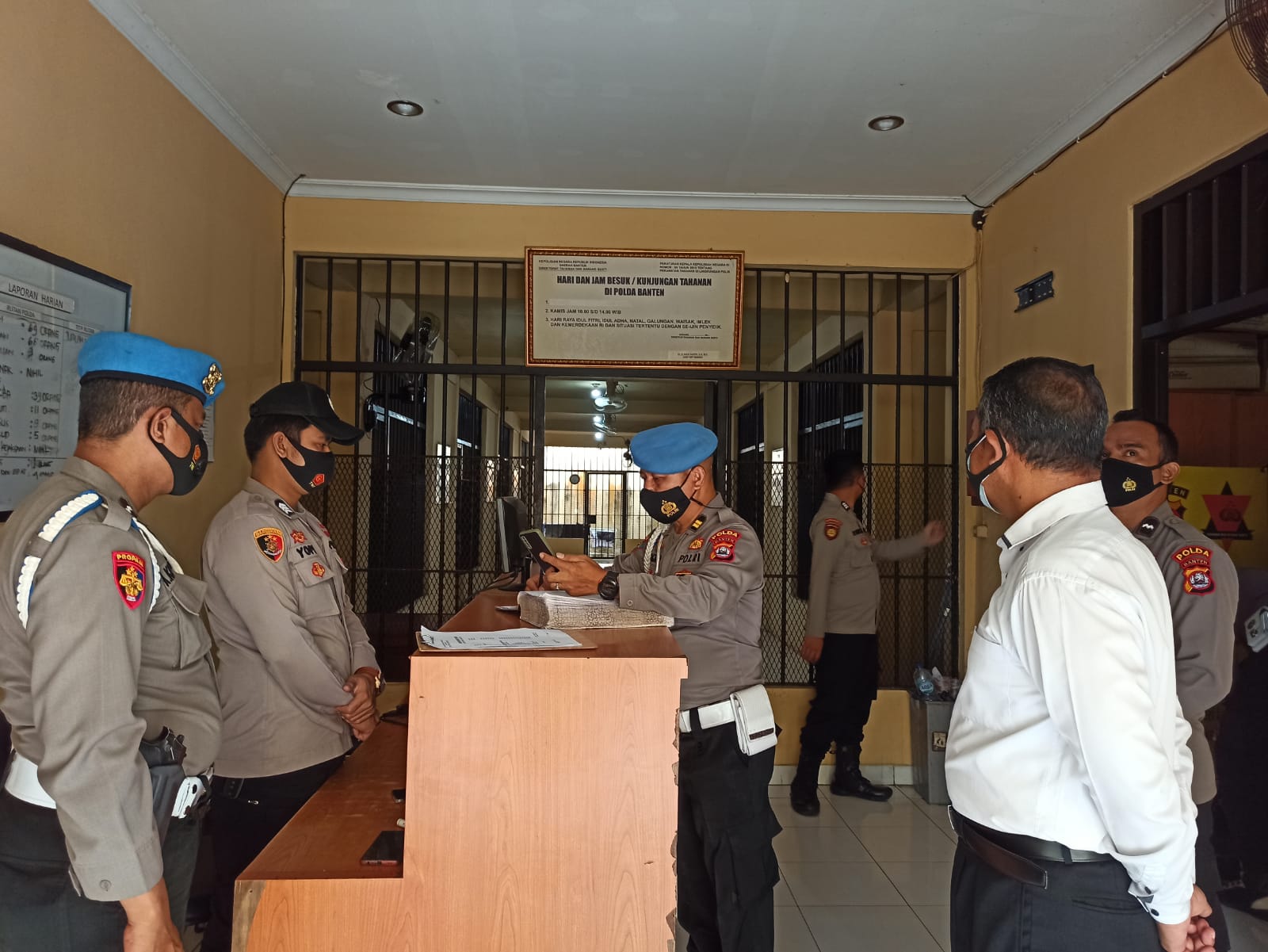 Subbid Provos Bidpropam Polda Banten Kompol Feby Harianto dan anggota beserta Pamenwas melaksanakan pengecekan terhadap petugas jaga tahanan dari Direktorat Tahti Polda Banten berupa, buku mutasi, ruangan tahanan, para tahanan, yang berada di Rutan Polda Banten” ujar Feby Harianto