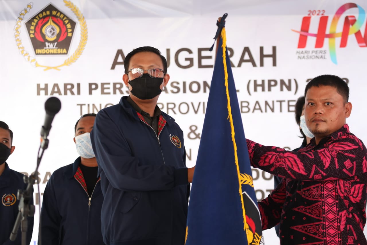 Kemudian Wali Kota Serang Banten juga mendapat penghargaan atas kontribusinya dalam pembangunan sarana dan prasarana PWI Provinsi Banten.