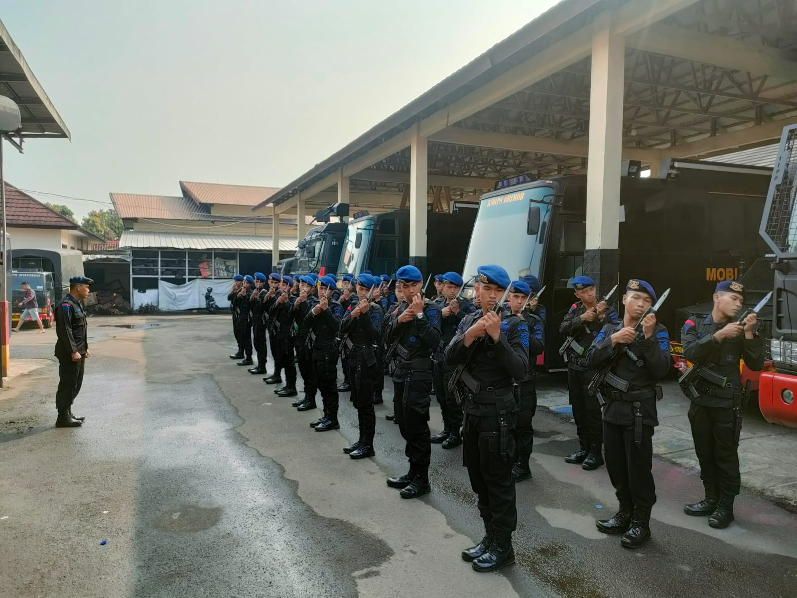 Danyon B Pelopor Kompol Septiono, menyampaikan bahwa latihan baris-berbaris khususnya pasang sangkur merupakan latihan awal untuk bela negara.