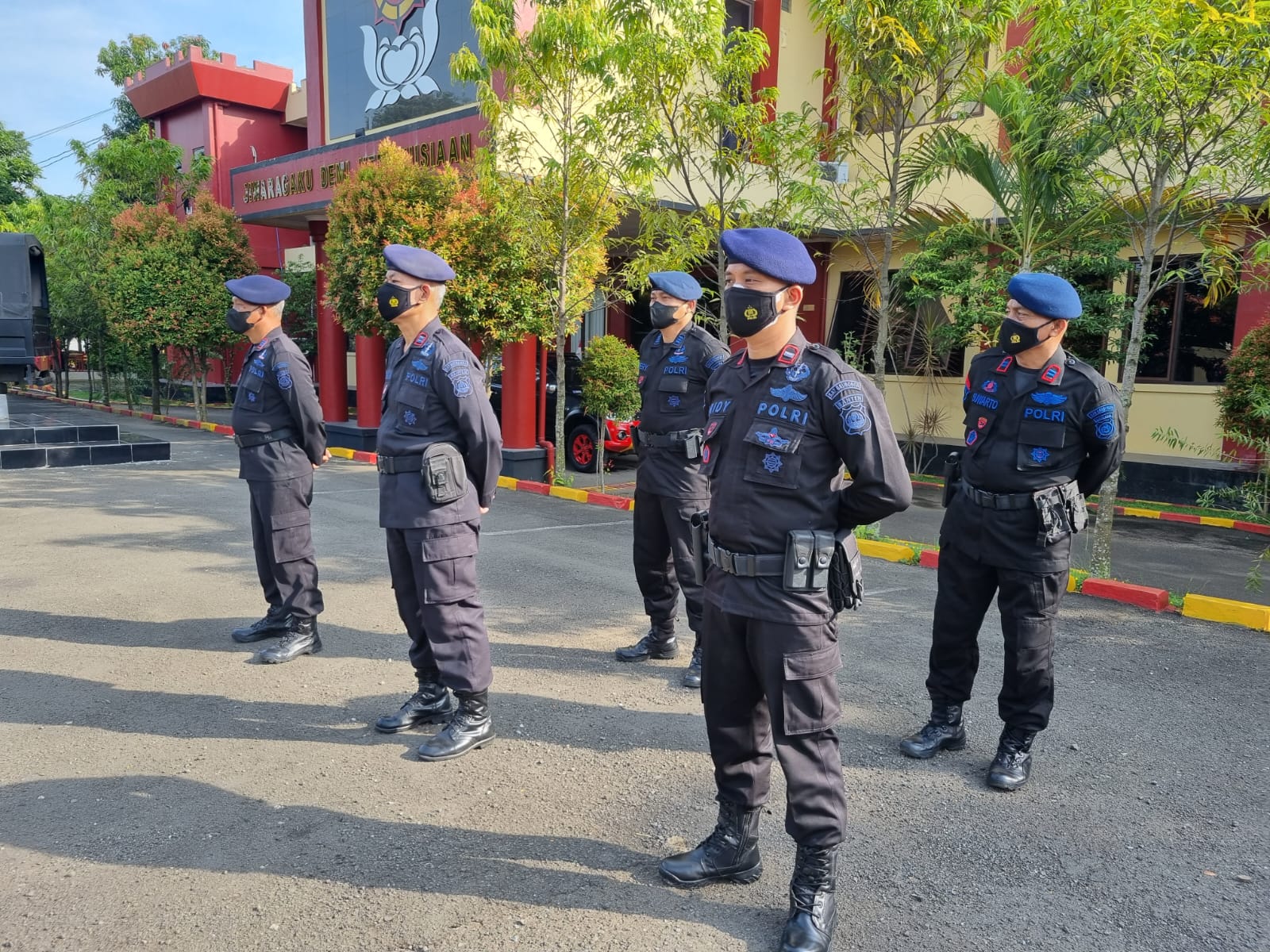 Serang – Personel Satbrimob Polda Banten melaksanakan apel pagi di halaman depan Satbrimob Polda Banten Jln. K.H. Amin Jasuta no.1 Serang 42115, pada Selasa (19/04).