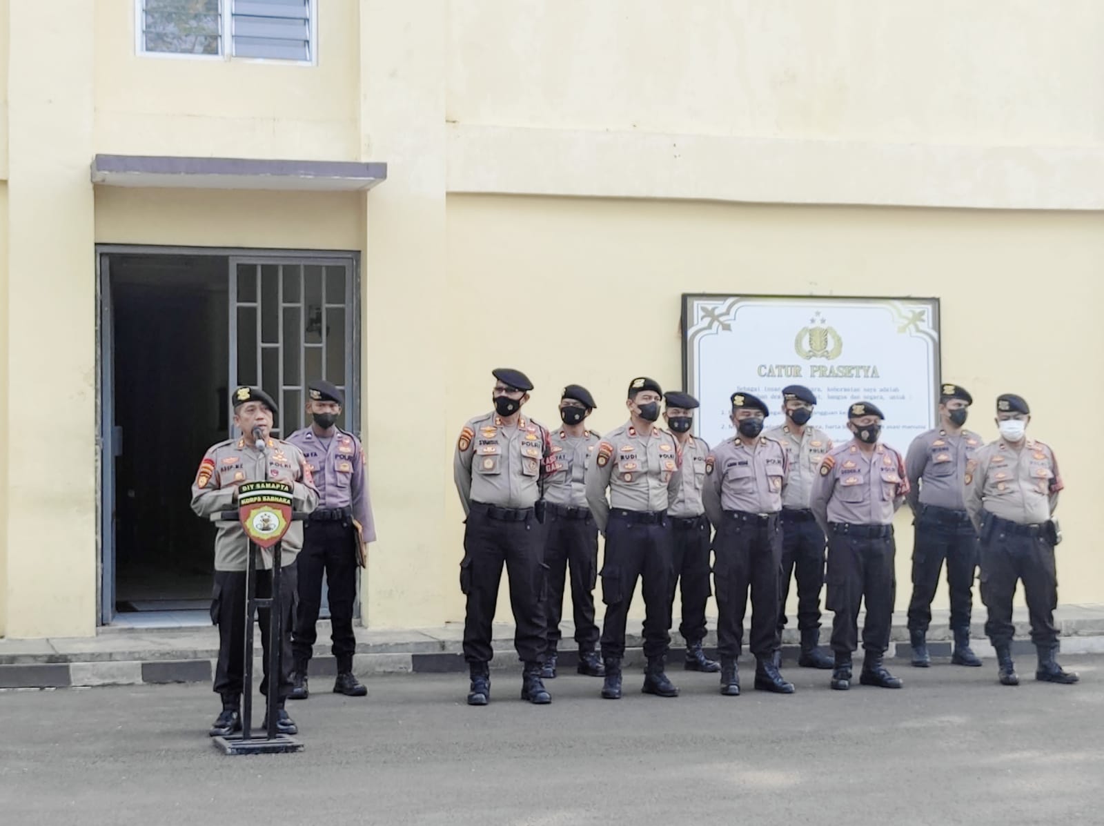 Saat apel Dirsamapta Polda Banten Kombes Pol Murwoto memberikan arahan kepada seluruh personel untuk tetap memiliki Disiplin dalam bertugas.