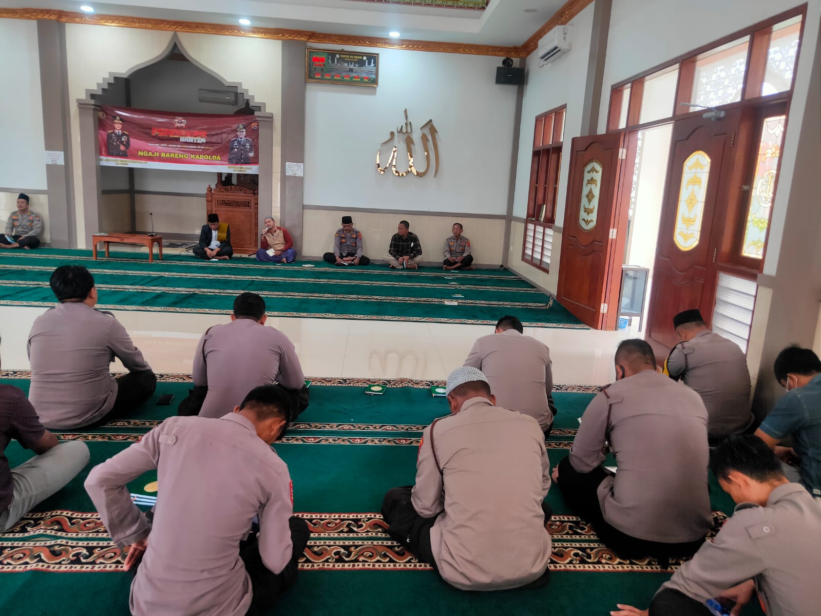 Serang, (haluanbanten.co.id) – Personel Polres Serang laksanakan pengajian rutin mingguan di Masjid As-Salam Polres Serang Polda Banten. Kamis, (21/04/2022)