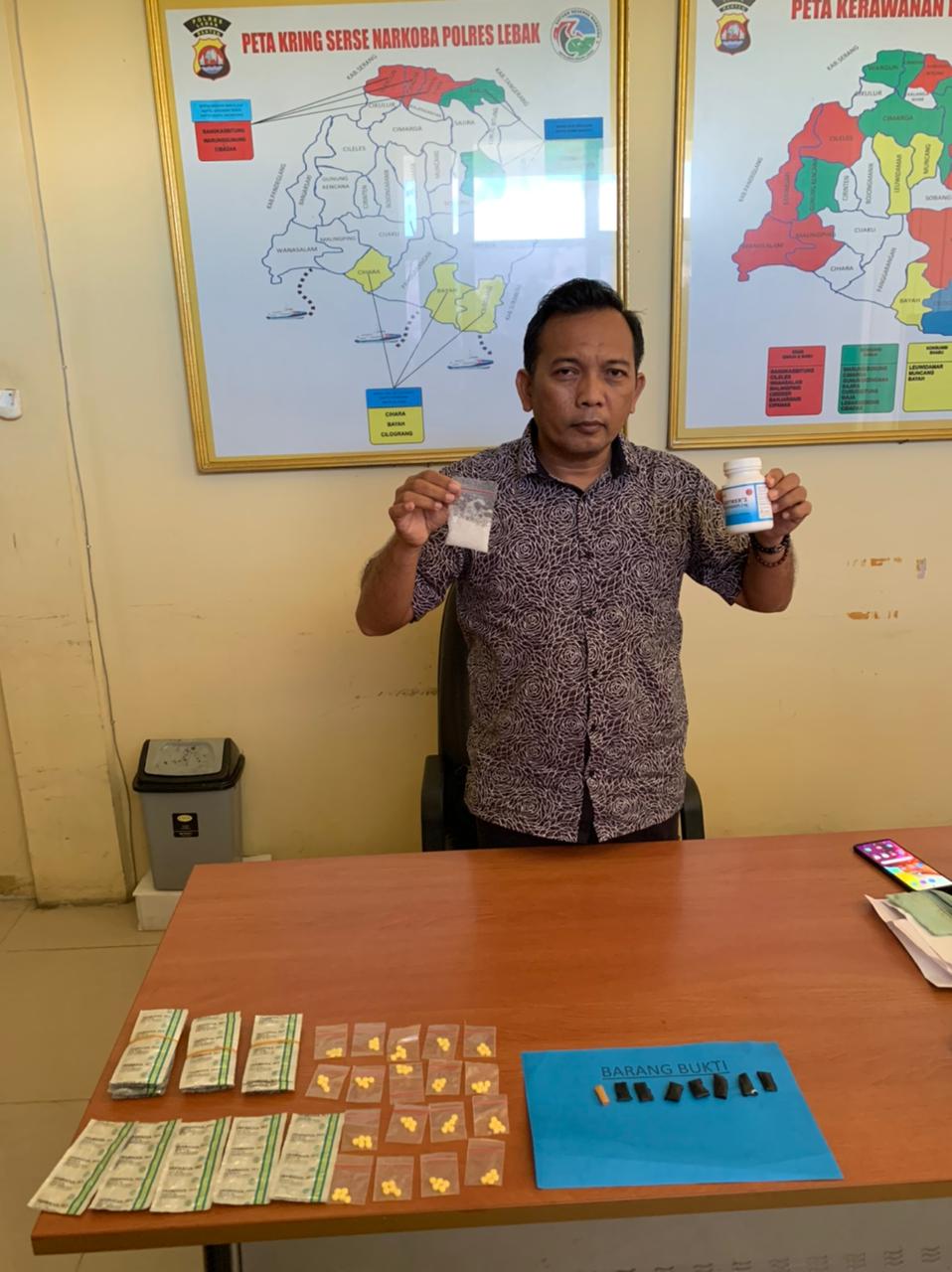 Pelaku DM (29) ditangkap di sebuah rumah di Kelurahan Cijoro Lebak Kecamatan Rangkasbitung Kabupaten Lebak karena telah mengedarkan obat farmasi tanpa izin edar dan petugas berhasil mengamankan ribuan butir obat jenis tramadol dan hexymer pada Selasa (31/05) pukul 14.00 WIB.