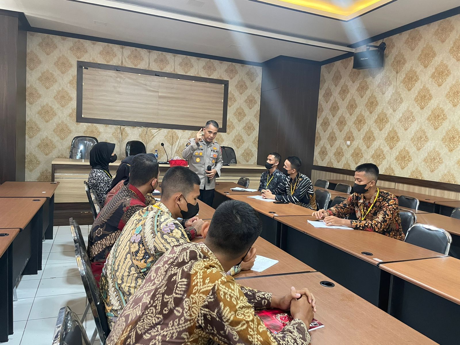 Serang – Kabid Humas Polda Banten Kombes Pol Shinto Silitonga memberikan arahan kepada Calon siswa (Casis) Bintara Rekruitmen Proaktif (Rekpro) terkait literasi digital dan manajemen media di Aula Birorena Polda Banten pada Kamis (09/06).
