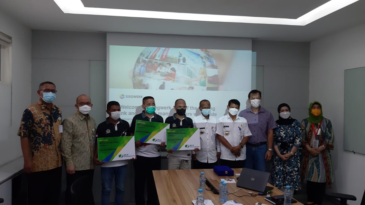 Penyerahan dilaksanakan di ruang rapat PT Siegwerk Indonesia di Jalan Pajajaran No 10, Pasir Jaya, Jatiuwung, RT.001/RW.003, Gandasari, Kecamatan Jatiuwung, Kota Tangerang. Hadir dalam kesempatan tersebut di antaranya Deputi Direktur BPJS Ketenagakerjaan Kanwil Banten Yasaruddin, Kepala Cabang BPJamsostek Cabang Tangerang Cimone Yan Dwiyanto, Camat Jatiuwung Edih S, Lurah Gandasari dan jajarannya. Ada pun dari pihak perusahaan hadir dari top management.
