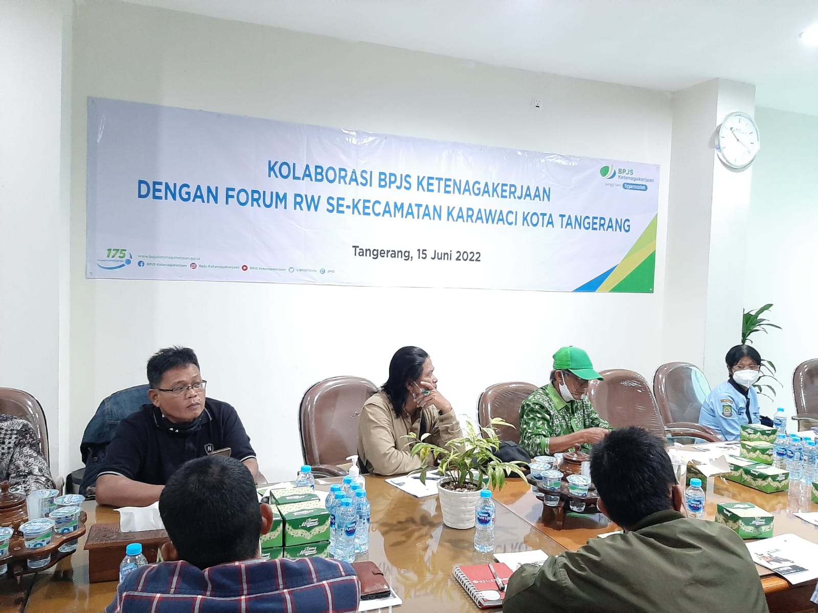 TANGERANG, (Haluanbanten.co.id) – BPJS Ketenagakerjaan (BPJAMSOSTEK) Cabang Tangerang Cimone gandeng forum RW Se-Kecamatan Karawaci, Kota Tangerang untuk menjadi agen Perisai BPJAMSOSTEK.