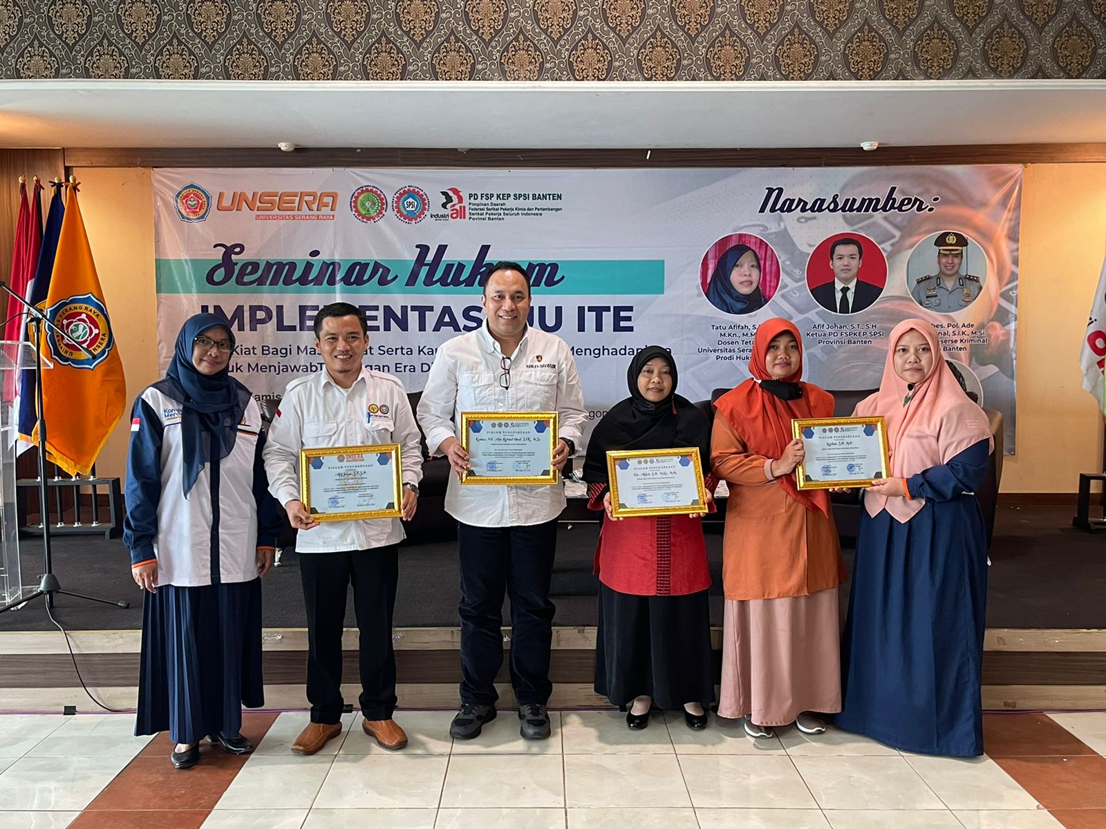 Kegiatan seminar tersebut diikuti langsung oleh Pimpinan Daerah Federasi Serikat Pekerja Kimia Energi dan Pertambangan Serikat Pekerja Seluruh Indonesia (FSP KEP SPSI) Provinsi Banten Afif Johan, Rektor Unsera Hamdan yang diwakili oleh Wakil Dekan Ibu Sumiati, Serikat Pekerja Seluruh Indonesia (SPSI) serta Mahasiswa Unsera.