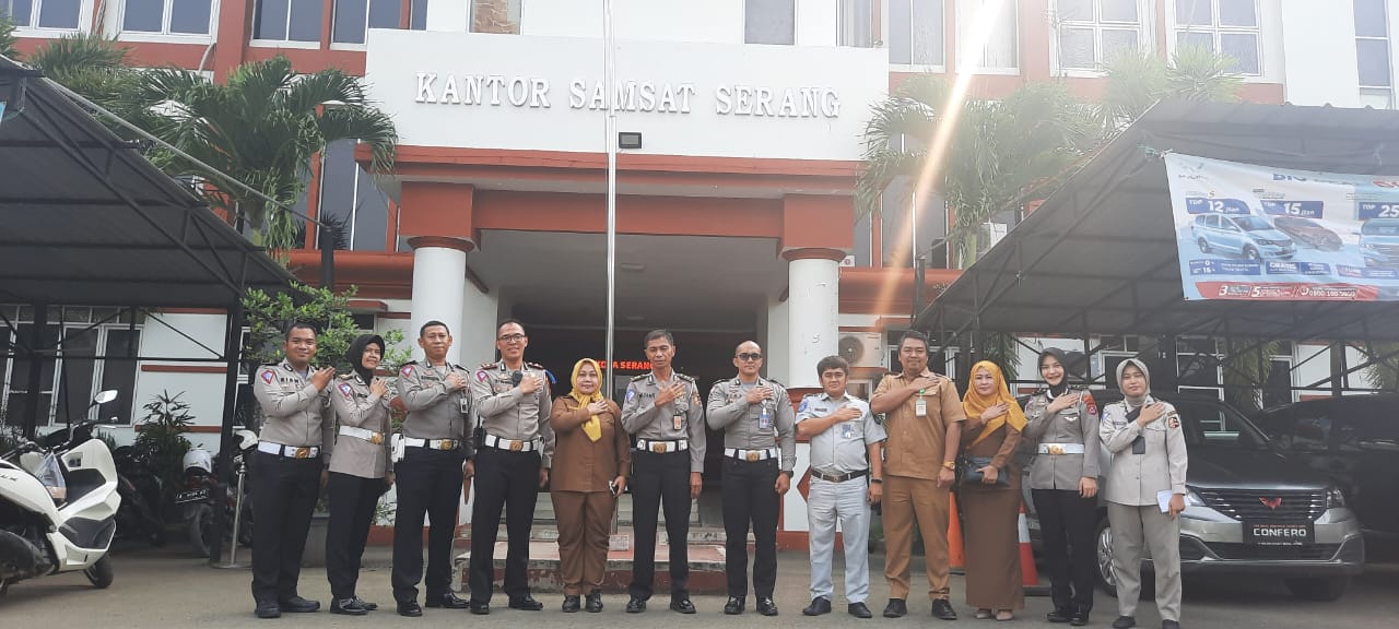 Serang – (22/6/2022) Bertempat di Samsat Kota Serang, Korlantas Polri melakukan kunjungan kerja di UPT Samsat Kota Serang serta melakukan Silaturahmi dan Koordinasi Tim Pembina Samsat yang terdiri dari tiga instansi pemerintah yaitu Kementerian Dalam Negeri (Kemendagri) melalui Badan Pendapatan Daerah (Bapenda) Provinsi Banten, Korlantas Polri melalui Polda Banten, dan PT Jasa Raharja Cabang Banten. “Melalui Kunjungan Kerja ini, kami dari Korlantas Polri berupaya memberikan pelayanan yang optimal kepada masyarakat melalui anggota kami yang berada di Kantor Bersama Samsat, terus berinovasi dan memberikan edukasi kepada anggota kami terkait pelayanan publik demi kenyamanan masyarakat dalam melakukan pembayaran pajak kendaraannya di Samsat”, ujar AKBP Muhar Perwakilan dari Korlantas Polri