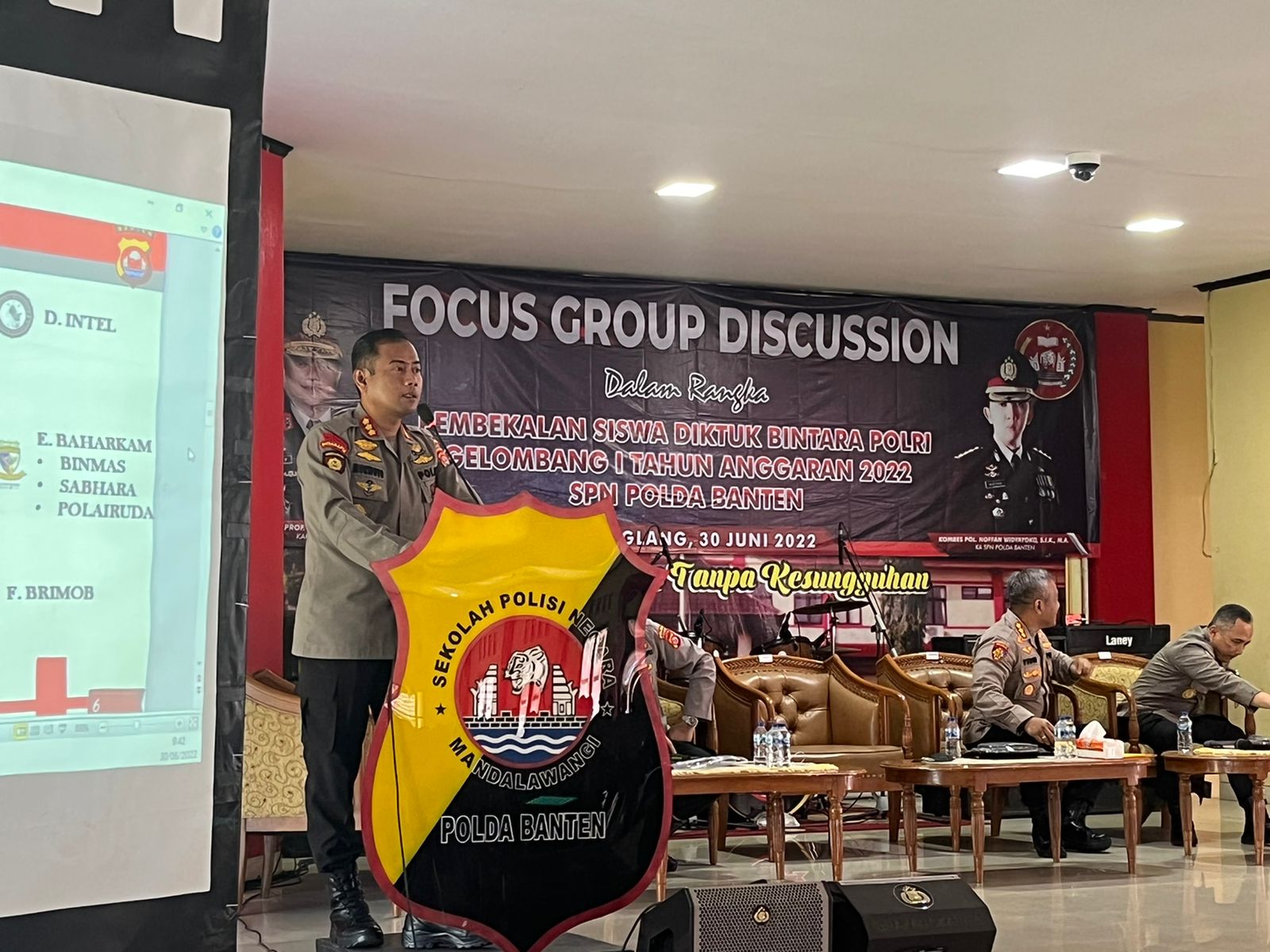 Pandeglang-Menjelang pelantikan siswa Pendidikan Pembentukan Bintara (Diktukba) Polri Gelombang I tahun 2022 yang akan dilaksanakan pada Kamis (07/07) mendatang, SPN Mandalawangi Polda Banten menggelar Focus Group Discussion dengan memberikan pembekalan kepada siswa-siswa yang akan dilantik tersebut.