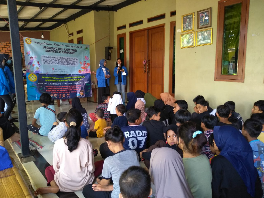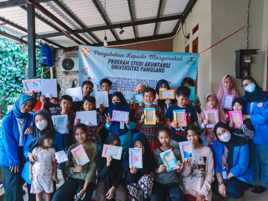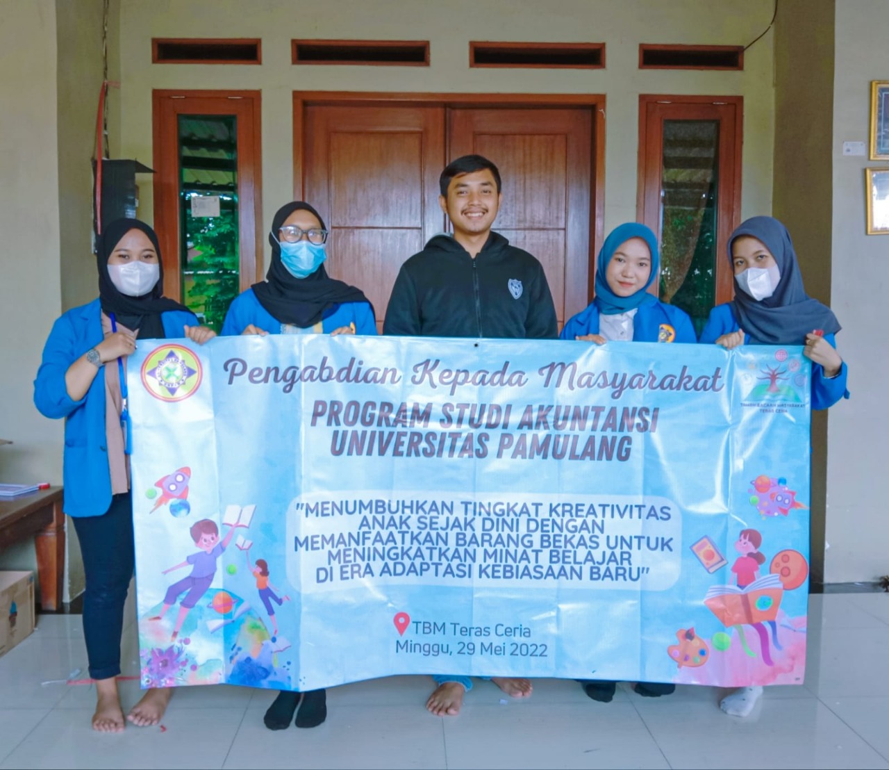 Mahasiswa dan Dosen Program Akuntansi Fakultas Ekonomi Universitas Pamulang mengedukasi tentang pentingnya kreativitas anak usia dini di TBM Teras Ceria, Serua, Ciputat Timur, Kota Tangerang Selatan, Banten.