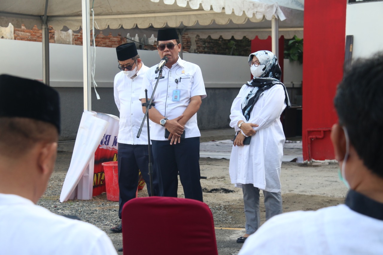 Kepala Kantor Wilayah Kemenkumham Banten yang dalam kesempatan ini diwakili Kepala Divisi Pemasyarakatan (Masjuno) menghadiri langsung pemotongan hewan kurban di halaman belakang Kanwil Kemenkumham Banten.