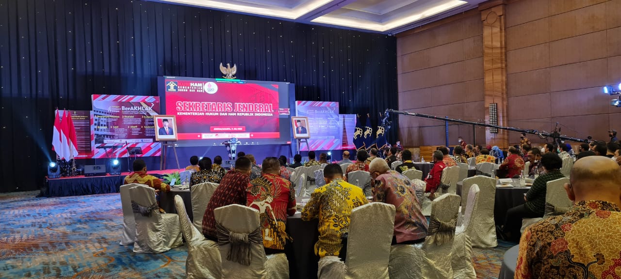 JAKARTA, (Haluanbanten.co.id) – Kepala Kantor Wilayah Kemenkumham Banten Tejo Harwanto, didampingi Kepala Divisi Administrasi, Sri Yusfini Yusuf hadiri secara langsung Kegiatan Rakor Pengendalian Program Dukungan Manajemen Kementerian dan Pembukaan Rekon Pemutakhiran Data lap. Keuangan dan BMN Kementerian, Senin, 11 Juli 2022, bertempat di Hotel Pullman Central Park Jakarta.