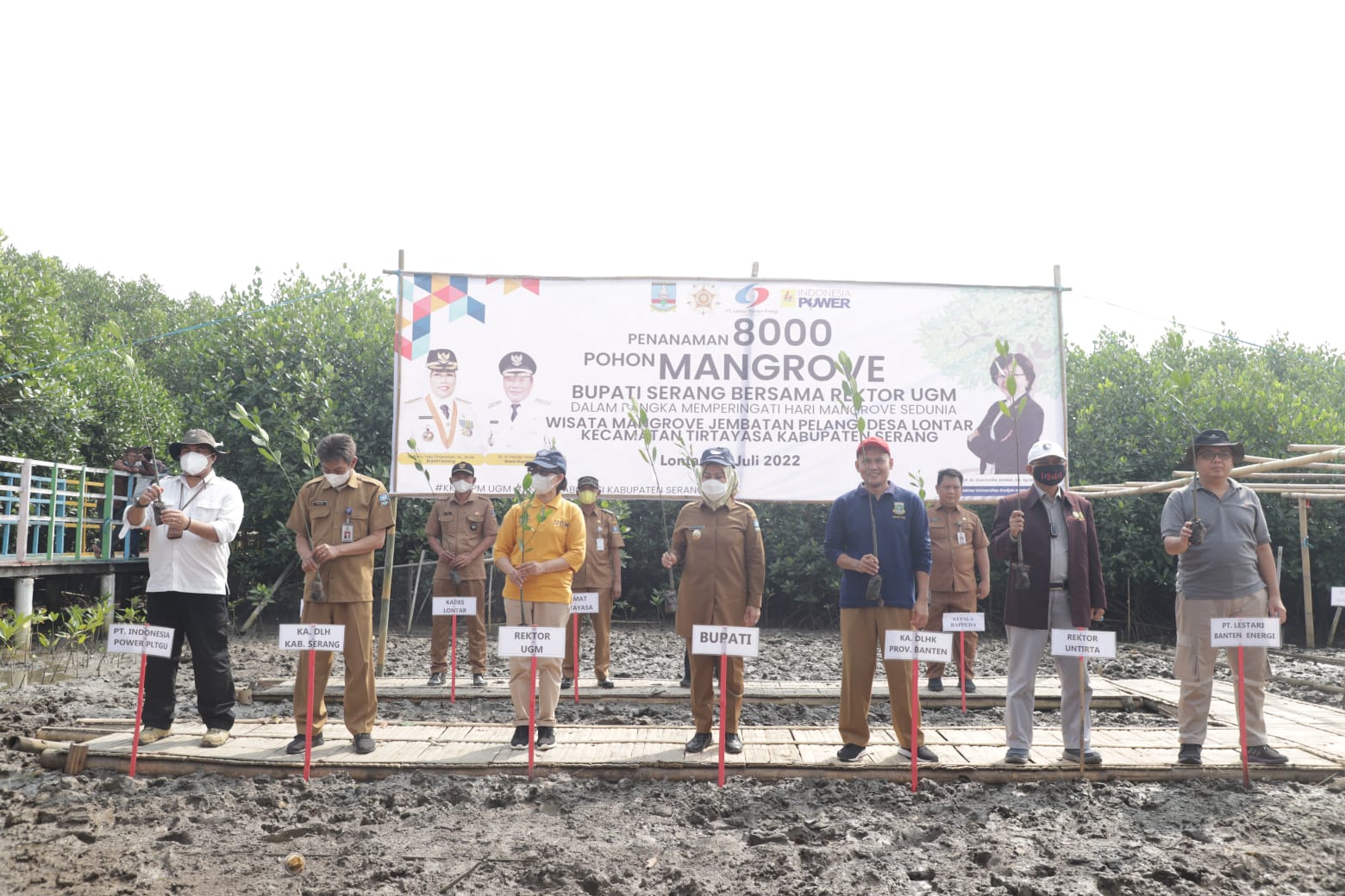 Penanaman mangrove dilakukan oleh Bupati Serang Ratu Tatu Chasanah bersama Rektor Universitas Gadjah Mada Profesor Ova Emilia, sejumlah perusahaan industri dan kepala OPD Pemkab Serang.