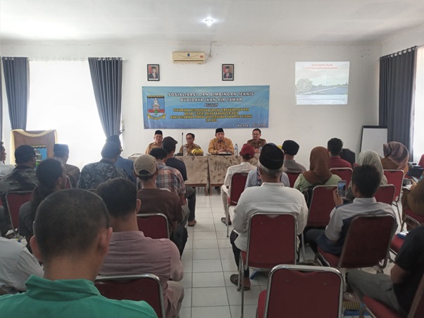 SERANG, (Haluanbanten.co.id) – Dinas Ketahanan Pangan dan Perikanan (DKPP) Kab Serang menyenggarakan Acara Sosialisasi dan Bimbingan Teknis Bagi Pelaku Usaha Budidaya Air Tawar yang bertempat di Aula Kantor Kecamatan Carenang. Sosialisasi Pembudidaya Ikan Air Tawar yang diikuti oleh 40 peserta, yang mewakili 4 Kelompok Pembudidaya Ikan (Pokdakan) di Kab Serang, antara lain Pokdakan Mina Putra Wali Kec Carenang, Pokdakan Saung Jumbo Kec Tanara, Pokdakan Binuang Jaya Kec Binuang dan Pokdakan Rejeki Barokah Kec Tirtayasa. Selasa, 26 Juli 2022.