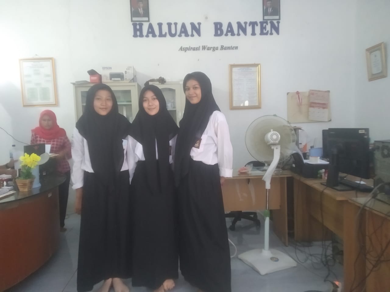 Lesman Bangun, Pimpinan Perusahaan PT. Haluan Bangun Banten mengajak ke tiga (3) siswa berkeliling ruangan dan memperkenalkan kepada seluruh staf di kantor dan memberikan penjelasan terkait tugas dan fungsi di tiap ruangan yang mereka kunjugi.