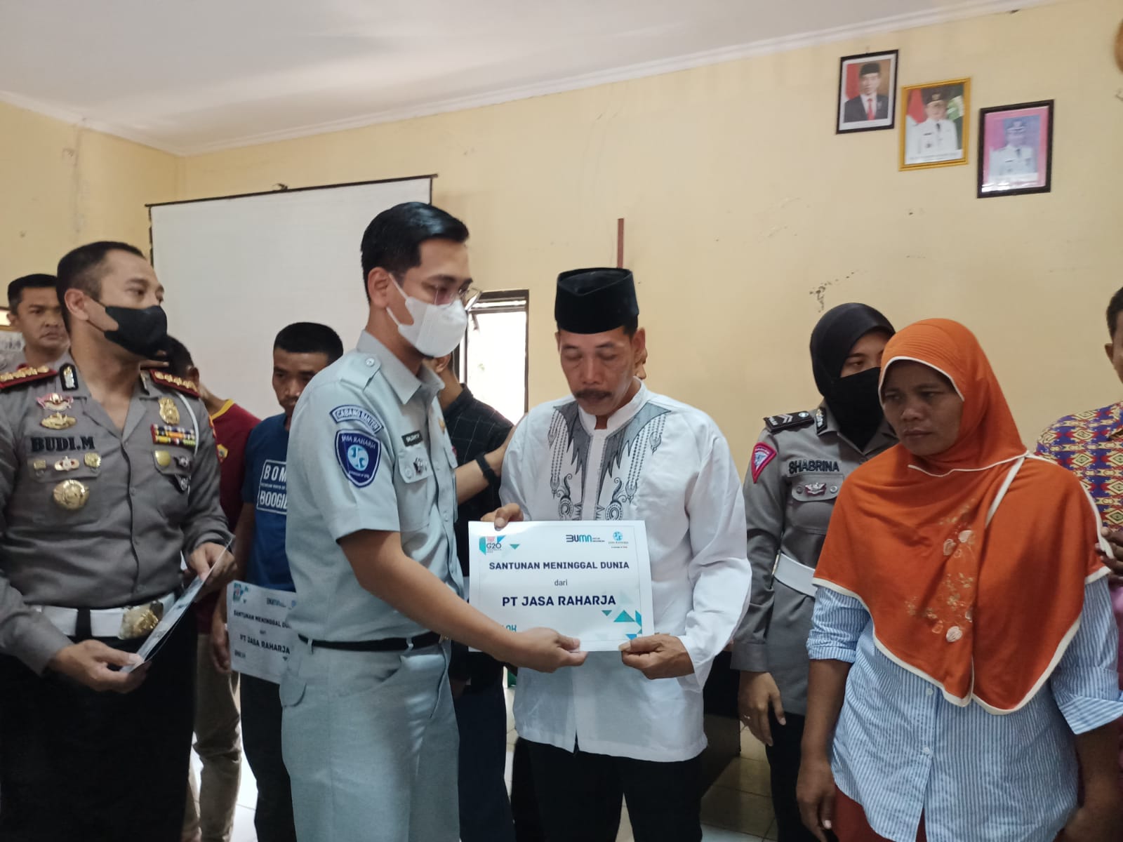 SERANG, (haluanbanten.co.id) – Jasa Raharja Cabang Banten serahkan secara langsung santunan kepada ahli waris korban odong-odong yang tertabrak Kereta Api di Kragilan, Kabupaten Serang pada hari Selasa (26/07) kemarin.