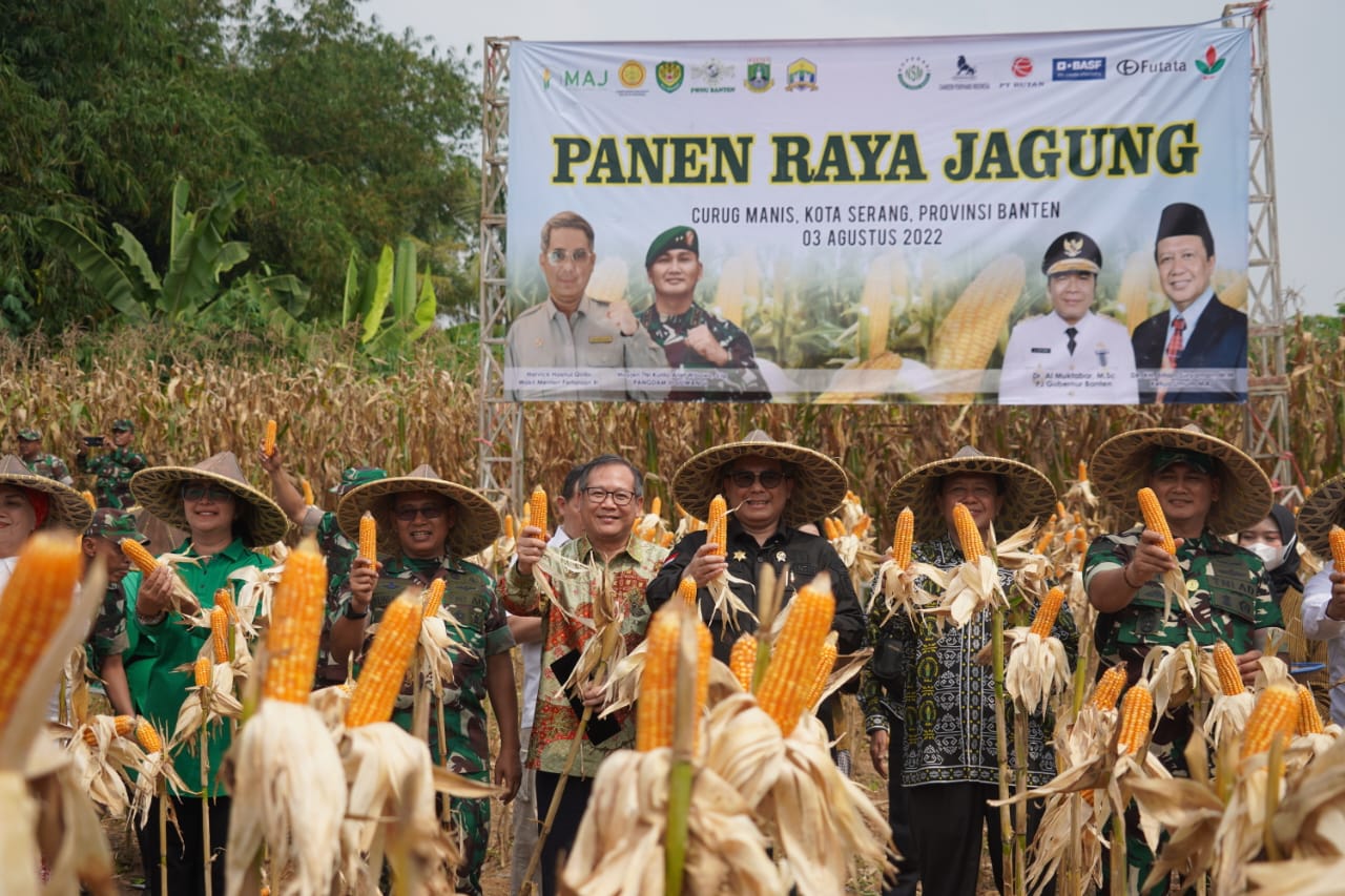 SERANG, (Haluanbanten.co.id) – Wakil Menteri Pertanian (Wamentan) Harvick Hasnul didampingi Pangdam III Siliwangi Mayjen TNI. Kunto Arief Wibowo, Danrem 064/MY Brigjend TNI. Yunianto, Ketua Umum MAJ Eman Suryaman, Pj Gubernur Banten Al-Muktabar, Wali Kota Serang Syafrudin, dan pejabat lainnya melakukan rangkaian acara panen raya jagung di Kelurahan Curugmanis, Kecamatan Curug, Kota Serang pada Rabu, (03/08/2022).