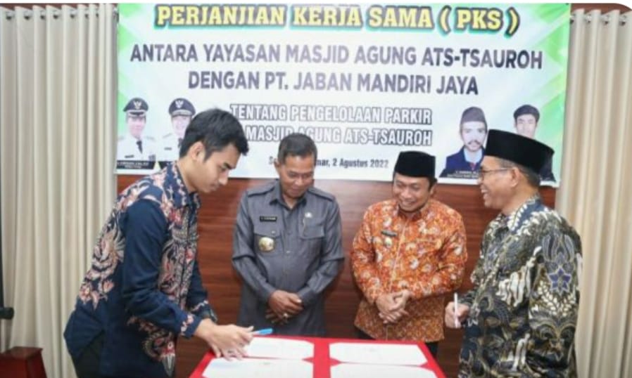Walikota Serang H Syafrudin dan Wakil Walikota Serang H Subadri Ushuludin menghadiri acara Penandatanganan Perjanjian Kerjasama (PKS) antara Yayasan Masjid Agung Ats-Tsauroh dengan PT. Jaban Mandiri Jaya tentang pengelolaan parkir di Masjid Ats-Tsauroh. Acara ini juga turut dihadiri oleh ASDA 1 Kota Serang, dewan pembina Yayasan Masjid Ats-Tsauroh, Direktur PT. Jaban Mandiri Jaya beserta kepala OPD terkait lainnya, Selasa (2/8/2022).