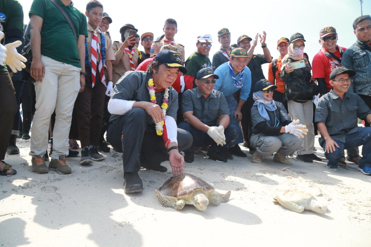 Sementara itu, tokoh masyarakat Pulau Sangiang Sopyan Sauri, menyambut baik kegiatan bersih-bersih pantai, penanaman pohon, pelepasan burung dan penyu. “Kami berharap kegiatan tersebut, memberikan contoh kepada masyarakat untuk mencintai kebersihan dan menjaga kelestarian alam,“ katanya.