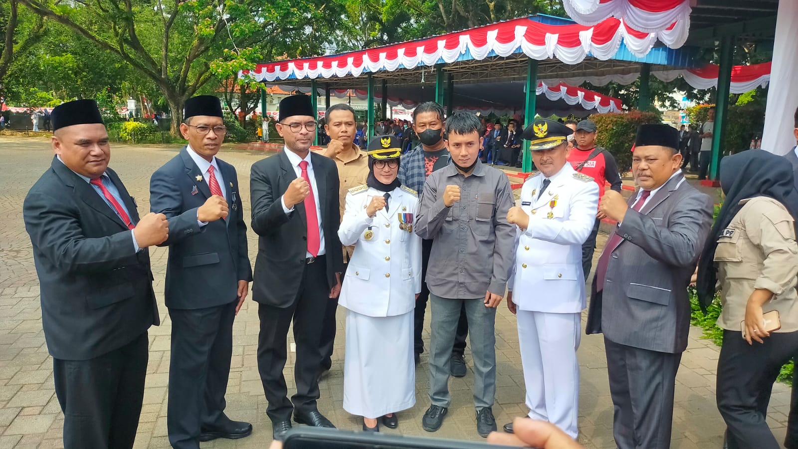 “Alhamdulillah pagi ini saya bisa menghadiri undangan Pemda Lebak dan mengikuti Upacara Pengibaran Bendera Merah Putih dalam rangka memperingati HUT kemerdekaan ke-77 di Alun-alun Rangkasbitung, saya Diki Maenaki menyatakan ikrar setia kepada Negara Kesatuan Republik Indonesia,” tegas Diki.