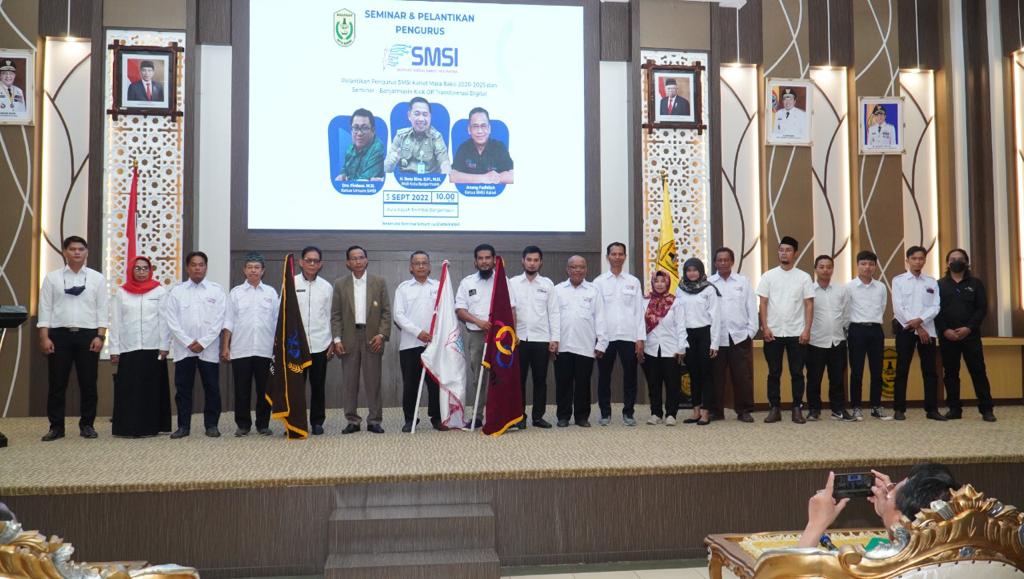 BANJARMASIN – Jajaran kepengurusan SMSI (Serikat Media Siber Indonesia) Provinsi Kalimantan Selatan (Kalsel) periode 2020 – 2025 resmi dilantik bersamaan dengan pelantikan Lembaga Bantuan Hukum (LBH) SMSI dan kepengurusan Millennials Cyber Media (MCM) Kalsel di Aula Kayuh Baimbai Kantor Walikota Banjarmasin Sabtu (3/9/2022).