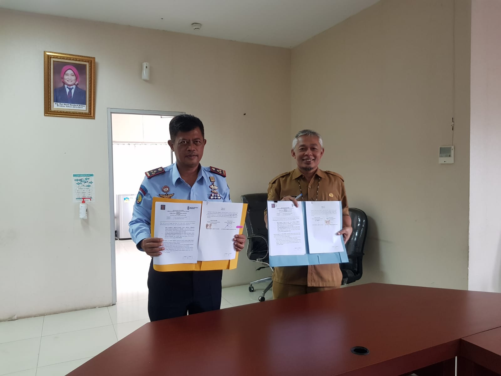 Bertempat di Ruang Rapat Rumah Sakit Provinsi Banten, Kepala Lapas Kelas IIA Serang, Heri Kusrita bersama Direktur RS Provinsi Banten, Dr. Danang Hamsah Nugroho melakukan penandatanganan Perjanjian Kerjasama Lembaga Pemasyarakatan Kelas IIA Serang dengan Rumah Sakit Provinsi Banten tentang Rujukan Pelayanan Kesehatan.