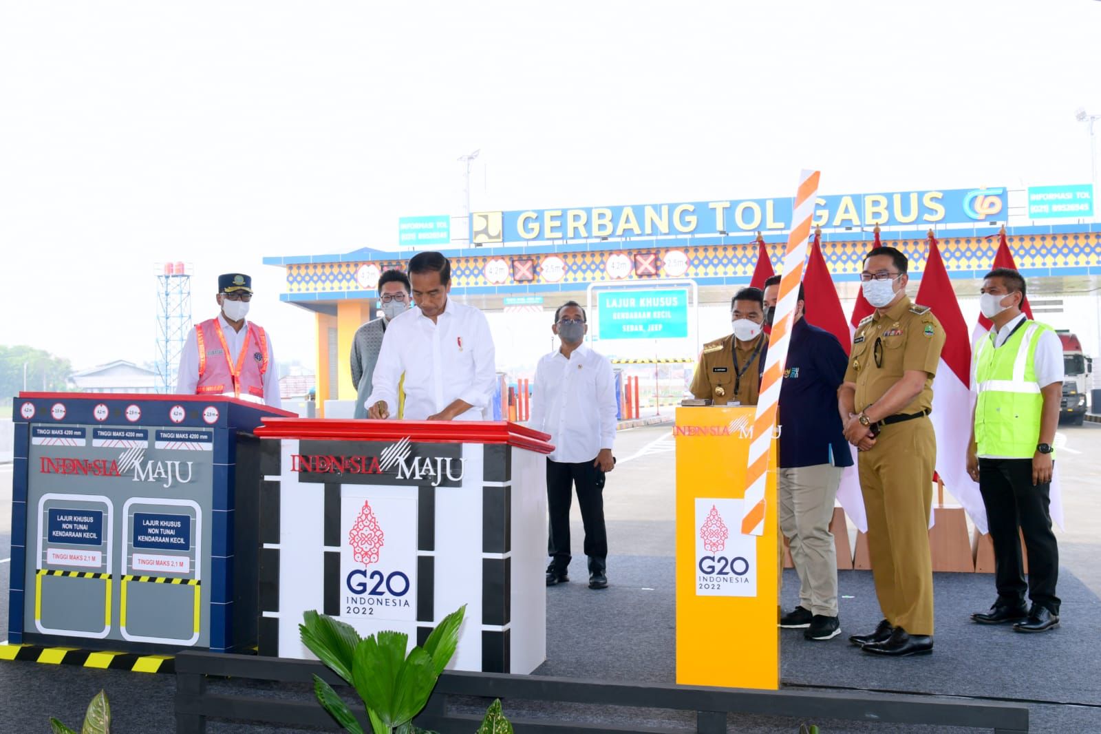 Penjabat Gubernur Banten Al Muktabar mendampingi Presiden Republik Indonesia Joko Widodo meresmikan Jalan Tol Serpong – Balaraja Seksi 1A. Peresmian dilaksanakan bersamaan dengan Peresmian Jalan Tol Cibitung Cilincing di Gerbang Tol Gabus, Kabupaten Bekasi, Selasa (20/9/2022). JTCC merupakan bagian dari Jakarta Outer Ring Road (JORR) 2 yang diharapkan selesai sepenuhnya pada akhir tahun 2023.