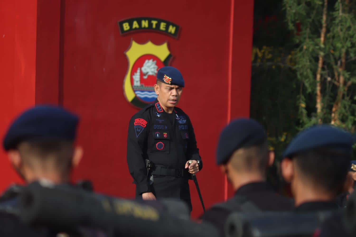 Serang – Dansat Brimob Polda Banten Kombes Pol Dede Rojudin memimpin apel kesiapan sekaligus pengecekan pasukan yang akan melaksanakan pengamanan Konferensi Tingkat Tinggi (KTT) G20 di Bali. Apel diselenggarakan di Lapangan Mako Satbrimob Polda Banten pada Kamis (06/10).