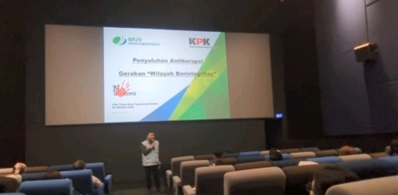 Kegiatan sosialisasi bertema Gerakan Wilayah Berintegritas tersebut diselenggarakan di gedung teater bioskop CGV Teras Kota dan sebagai narasumber yang berasal dari internal BPJS Ketenagakerjaan, yaitu Bonifa Refsi Petugas Pengawas dan Pemeriksa.